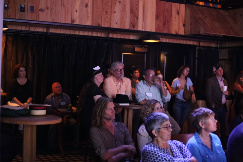 8/30/2016 Words for Terri Sue Published September 8, 2016 at 5760 × 3840 in Words for Terri Sue: Wrap-up and photos Nicole Bartlett, Larry Wormington, Susan Kagan, Bryan Block, Eric Layer, Amanda Hembre, Kathy Namba, Summer Wood, and the rest of the crowd listening to Maurice Ruffin. Photo by L. Kasimu Harris.