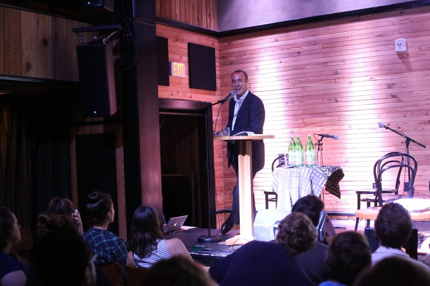 8/30/2016 Words for Terri Sue Published September 8, 2016 at 5760 × 3840 in Words for Terri Sue: Wrap-up and photos Nick Fox kicking off the evening. Photo by L. Kasimu Harris.