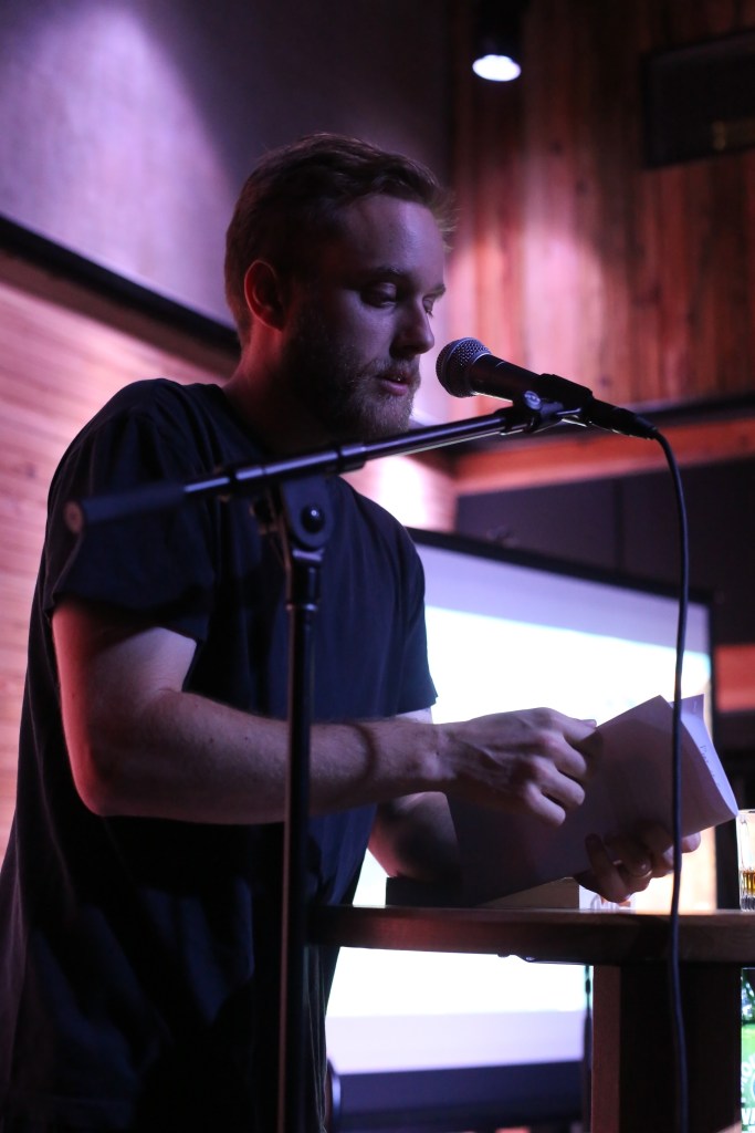 8/30/2016 Words for Terri Sue Published September 8, 2016 at 3840 × 5760 in Words for Terri Sue: Wrap-up and photos Nicholas Mainieri reading from his debut novel, The Infinite. Photo by L. Kasimu Harris.