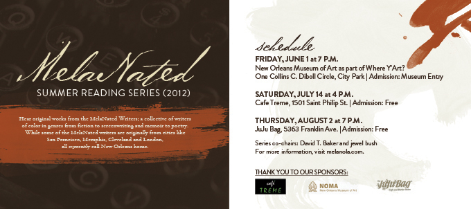 On the evening of June 1st, with other members of the Melanated Writers Collective, Peauxdunquian Maurice Carlos Ruffin will read from recent work at the New Orleans Museum of Art’s “Where Y’Art” series. On June 1st at 7 p.m., Where Y’Art will feature A MelaNated Summer, hosted by Kalamu Ya Salaam and including readings by several Melanated Collective members, including Maurice. The Melanated Summer Reading Series will continue with readings at Cafe Treme on July 14 and JuJu Bag on August 2.