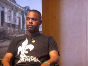 Gian Smith: Well, pre-Katrina, I had visited a couple of open-mics just here and there. I was motivated to actually start doing performance poetry after I saw Nikki Giovanni give a talk at Xavier, I believe in 2004. The way the very petite Nikki Giovanni kinda’ captured a room with a thousand people in it, including me, was very impressive and something that I thought I’d have the skill set for, so I decided then that I would try my hand at performance poetry. I guess it was mostly experimental in the beginning, but then post-Katrina or, during Katrina, I decided in my displacement that I wanted to come back to the city and be part of its culture and be part of the artistic movement that would come out of our regeneration and I figured poetry, spoken word poetry, was the easiest and the quickest way to really make a name for myself. You know us long prose writers, we don’t always have an audience, because people don’t necessarily wanna’ sit and listen for hours; they want to hear something five minutes long, a nice quick dose. So even though I did and still aspire to do things creatively with longer works like novels, screenplays, stuff like that, I knew I had the capabilities to be a good spoken word poet, so I just kinda’ started there.