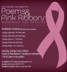 Poems and Pink Ribbons [tb:a workshop and reading series for breast cancer patients, survivors and loved ones, presented by the Literary Lab with a final reading and celebration on October 22 at 2372 St. Claude Avenue] was in my heart for about four years. I just sat on it. The combination of having a mother who survived breast cancer, and a mother-in-law who didn’t, provoke me to want to honor them with service. Everybody wears pins and walks, but I wanted to do something more impactful, hence Poems & Pink Ribbons. Different poets around the city have volunteered their time. The majority of the participants probably wouldn’t have called themselves “poet” prior to the workshop. They’ve become more organized, more serious poets as the weeks have gone by. One lady even has a binder and she organized her binder into class notes, poem hand outs and poems that she’s been writing. Poems & Pink Ribbons has an engine of its own now and I am just along for the ride.